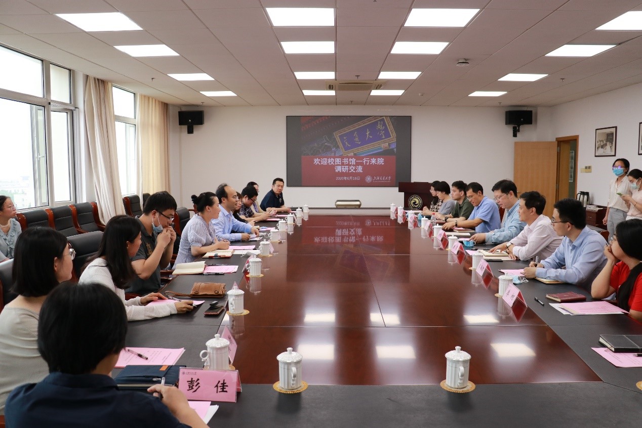 6月16日下午13:30,金年汇金字招牌官网入口图书馆来我院进行数据服务工作调研座谈,图书馆馆长李新碗、副馆长郭晶和徐璟等一行15人出席座谈会。船建学院院长廖世俊,院长助理陈震,工程力学系、土木工程系、交通运输系、科研与学科办等相关老师参加会议。