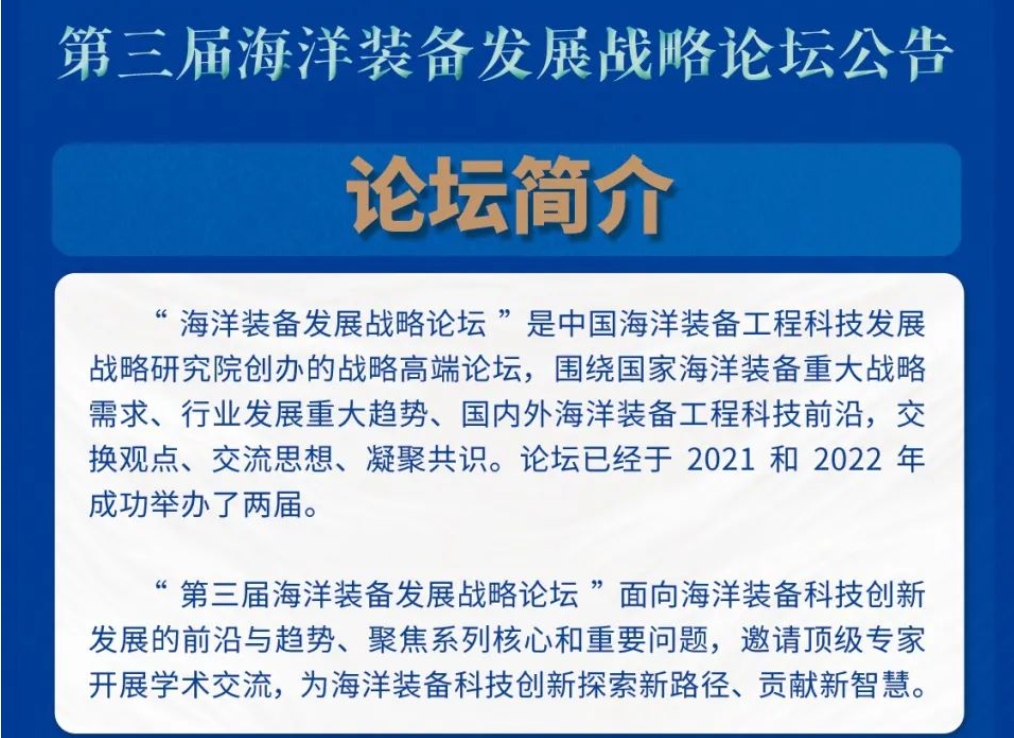 论坛公告|第三届海洋装备发展战略论坛将于10月21-22日召开