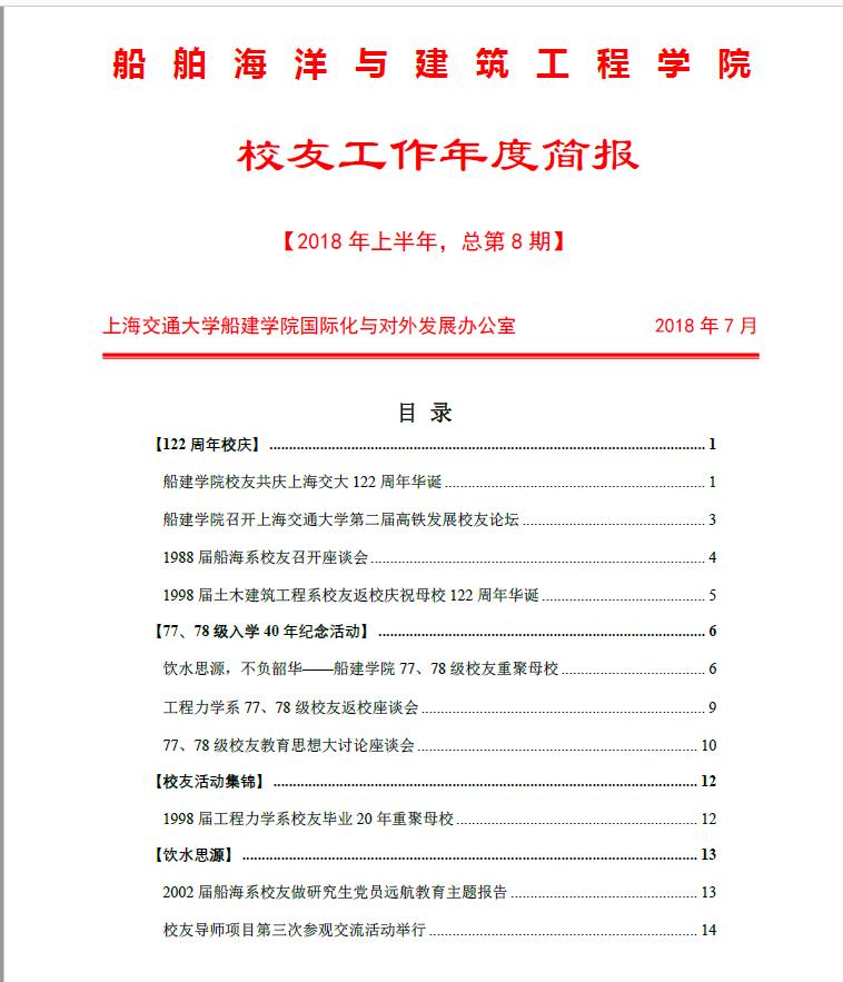 校友工作简报【2018年上半年,总第8期】